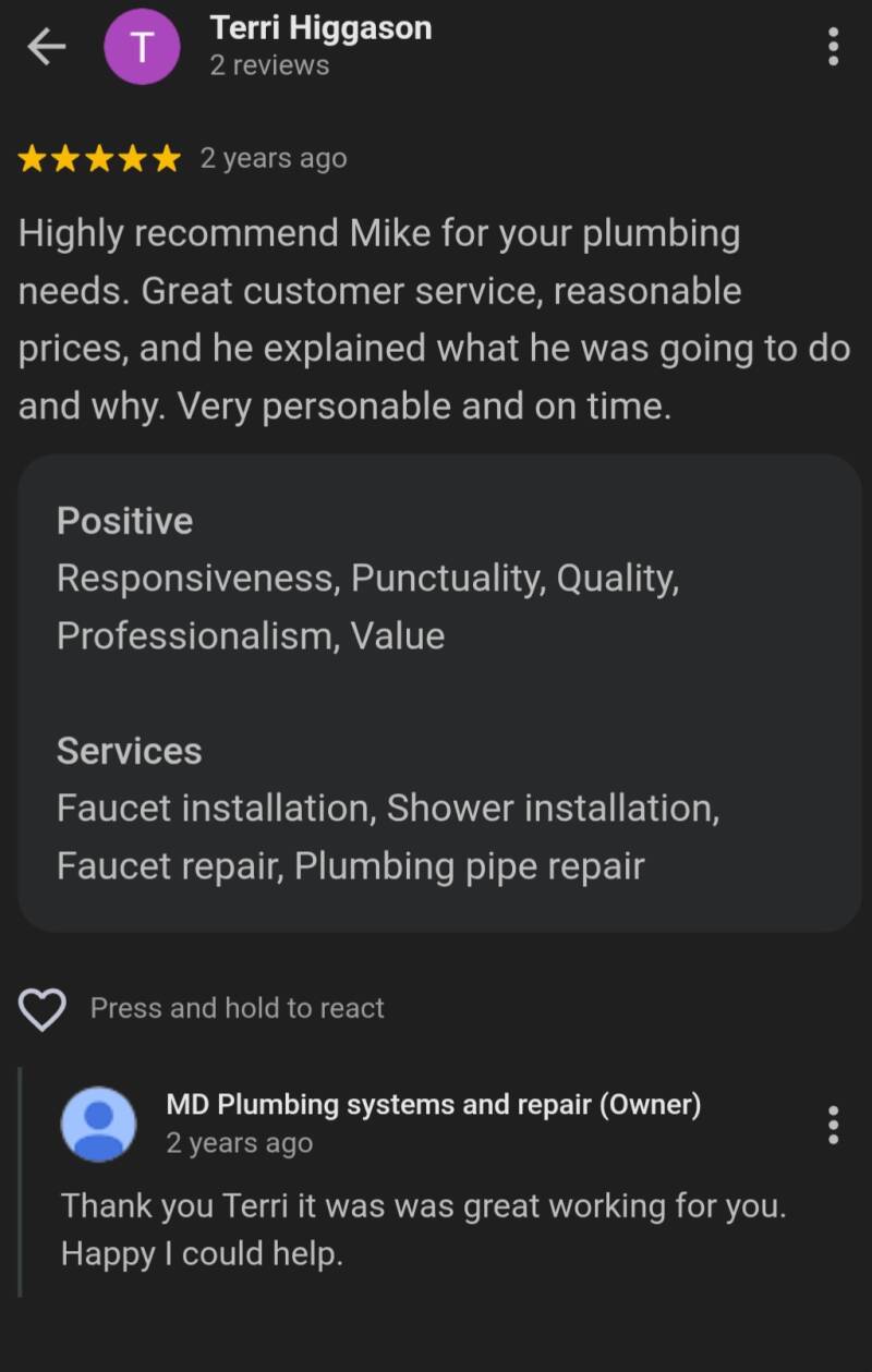 At MD Plumbing Systems and Repair, we're dedicated to providing exceptional service and building lasting relationships with our customers. We are committed to being honest, professional, and affordable. Give us a call today 909-855-8688
